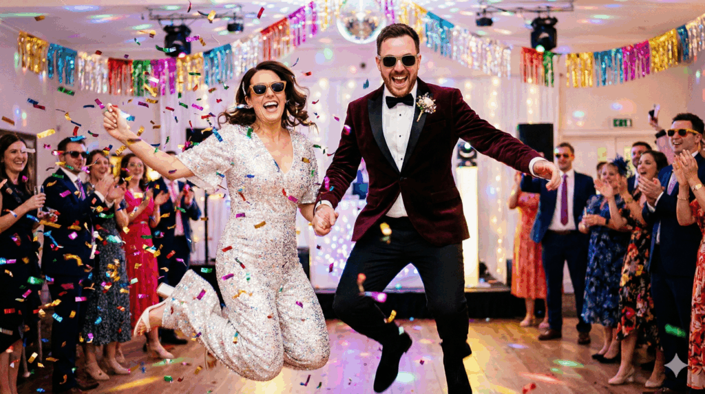Egyre több pár dönt úgy, hogy szakít a hagyományokkal, és már a szertartás elején megalapozza a parti hangulatot. Ez a stílus különösen jól működik polgári szertartásoknál, vagy a vacsorára való látványos bevonuláskor (Grand Entrance).